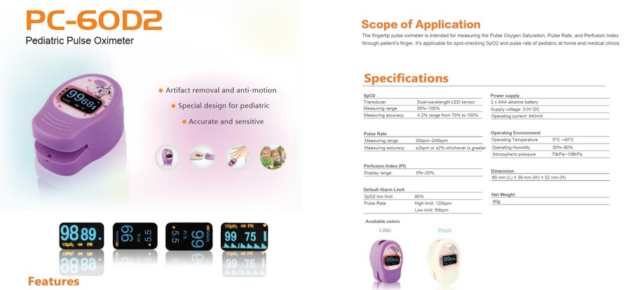OLED display of SpO2, PR, PI, Pulse Bar and waveform-